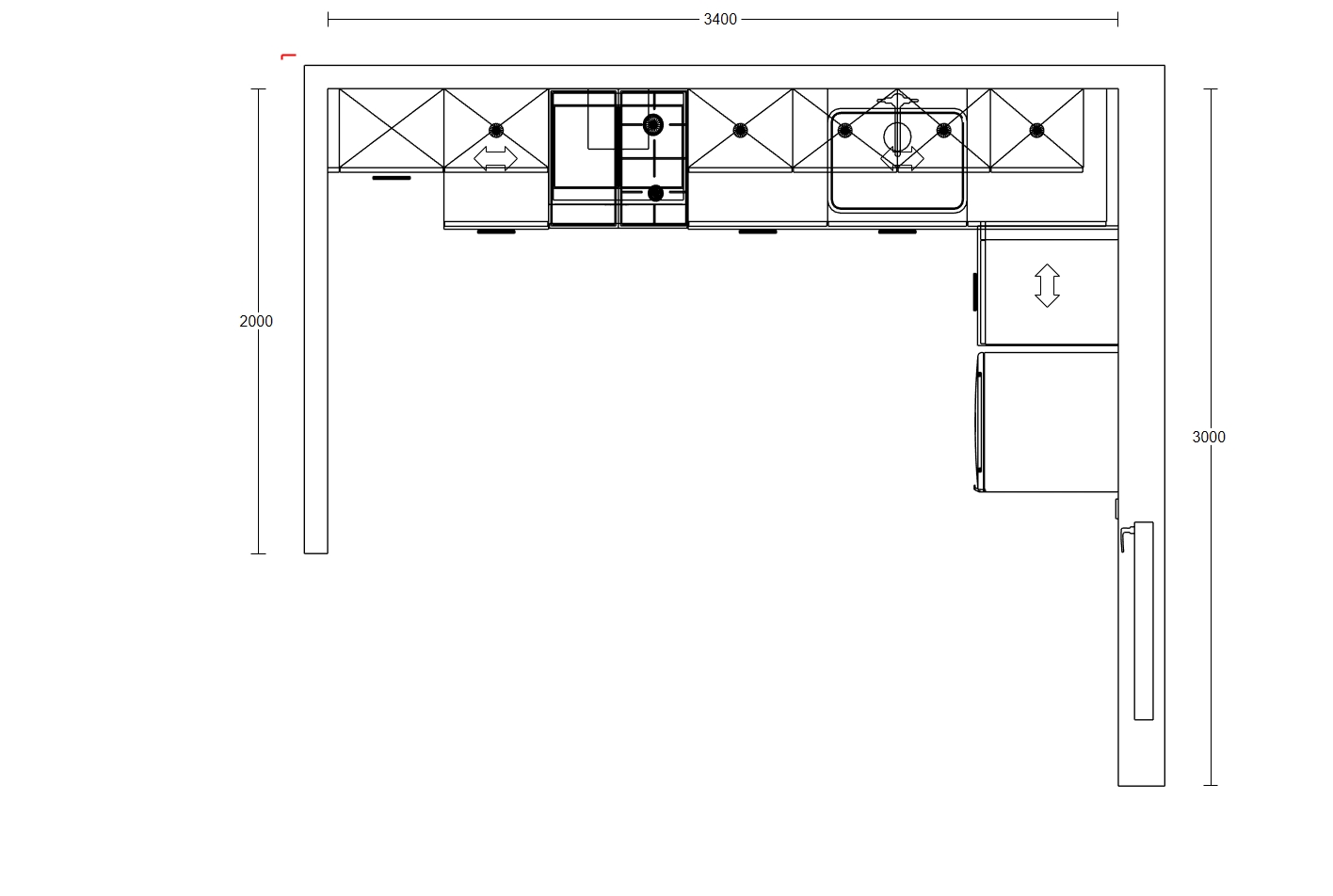 Περιλαμβάνει τις δύο τροφοθήκες, ολόκληρη την γωνία με τα ερμάρια του τοίχου, τα ερμάρια βάσης, τον πάγκο εργασίας από λευκή ομοιογενή επιφάνεια LG, τον νεροχύτη από το ίδιο υλικό, την μπαταρία και για περιοχή Αθηνών την μεταφορά και την τοποθέτηση.