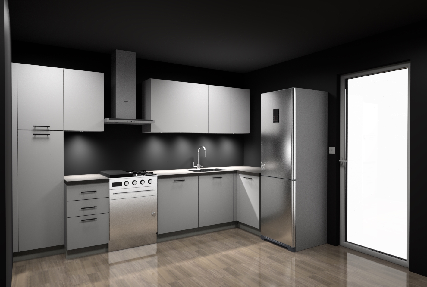 Περιλαμβάνονται: Πάγκος Laminate-φούρνος και ηλεκτρικές εστίες-απορροφητήρας.